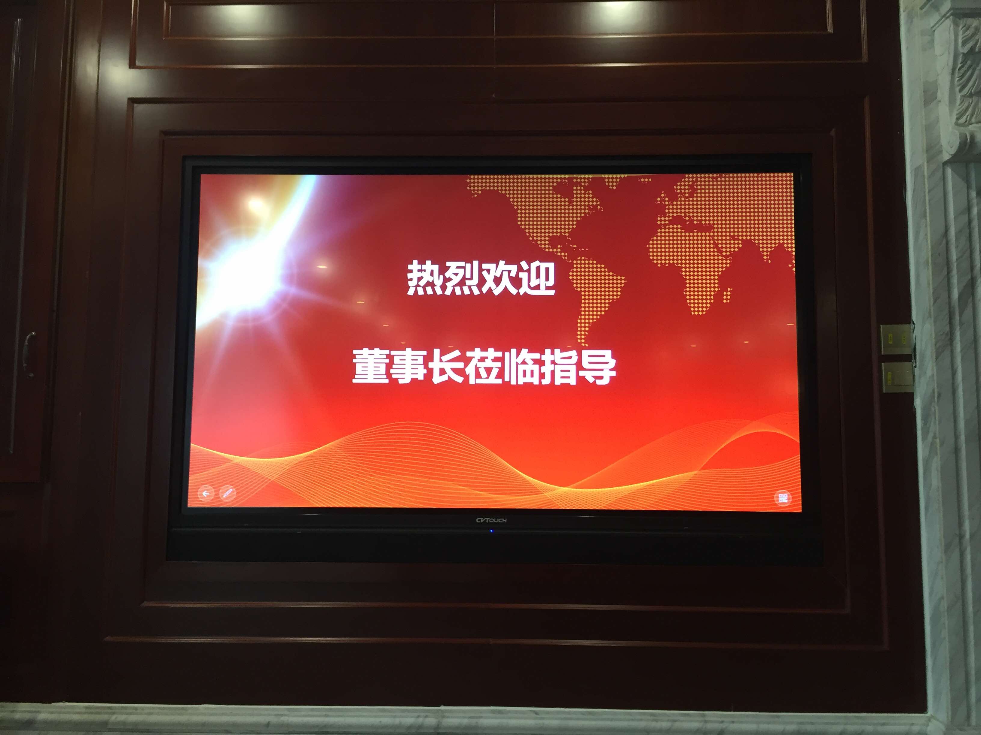 显示系统改造的核心是改造原有装修的背景墙,做嵌入式安装一台98寸 4K电视机作为显示输出设备 (HMDI布线 到机柜),同时在另一侧墙面,我们专门部署了一套Cvtouch 先进的 84寸电子白板系统,通过HDMI线缆与矩阵相连,通过此种方式,会议室完全抛弃了传统的白板书写模式,非常特别方便的是,用户之需要通过无线同屏器就可以实现分享笔记本内容显示到电子白板上面,而通过矩阵有可以随意打画面到投影幕/或者电视机 甚至是视频会议的信号接入端 (那么在远程会议的时候,就可以直接观看主会场的板书,用户会更加有体验感)