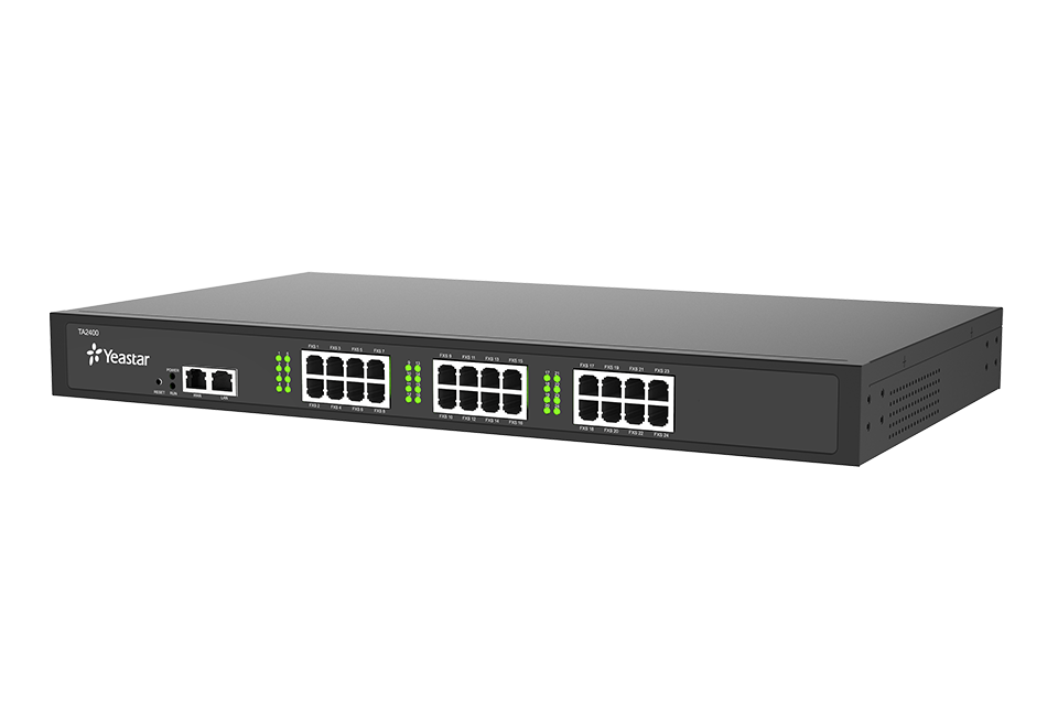 朗视TA系列内线口(FXS)模拟语音网关,提供4~32个FXS端口,采用标准的SIP、IAX2协议,兼容各种IPPBX和VoIP语音平台(如:IMS、软交换系统、呼叫中心等),可满足不同网络环境下的组网应用需求。设备采用高性能处理器,具有大容量、全并发的呼叫处理能力,具备电信级的稳定性。