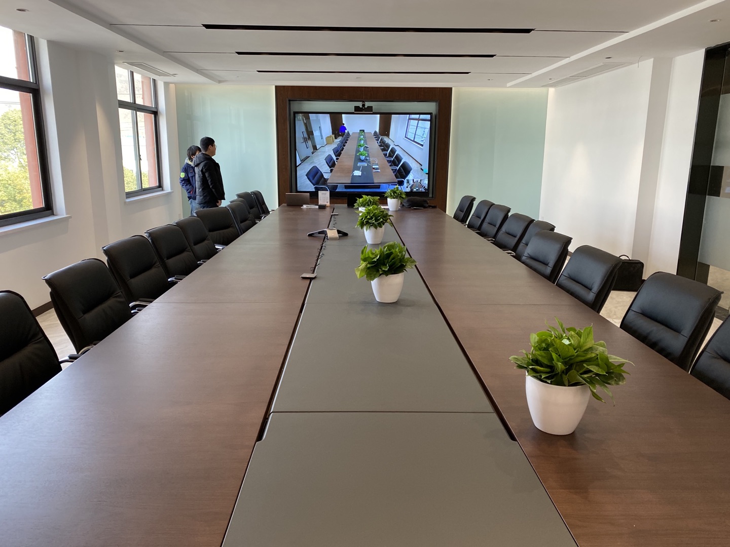 客户需要与广东江门分公司进行远程会议,根据会议室的大小结合使用人数,终选择联VC500-有线麦-无线辅流套装。